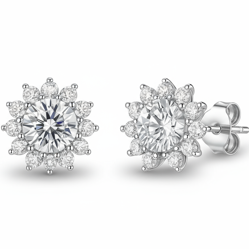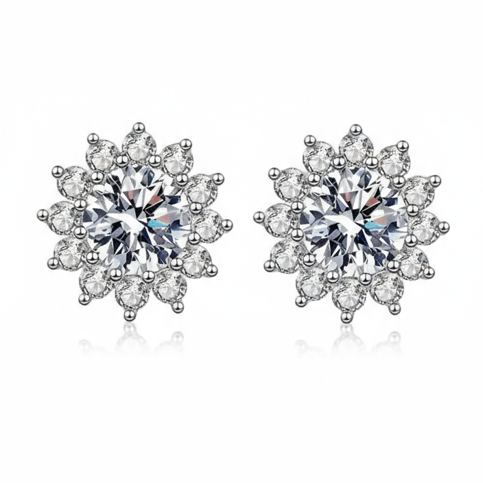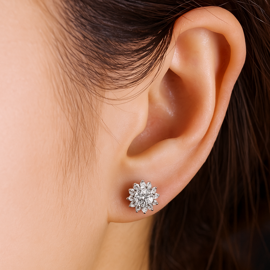 Leur forme délicatement florale évoque un souffle de givre suspendu, une élégance subtile qui illumine le visage avec douceur.